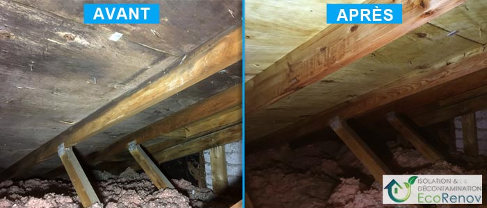 Observez par vous-même la différence et demandez dès maintenant votre évaluation sans frais pour la décontamination de votre entretoit. Composez le 438-800-2046 et nous paverons la voie pour vous en vue de l’obtention du meilleur plan de décontamination d’entretoit à un prix respectant votre budget. Isolation & Décontamination ÉcoRénov : votre meilleure ligne d’attaque pour la décontamination de moisissures, pour la décontamination de vermiculite, pour corriger les problèmes d’isolation d’entretoit, la ventilation d’entretoit et même la rénovation de toitures.